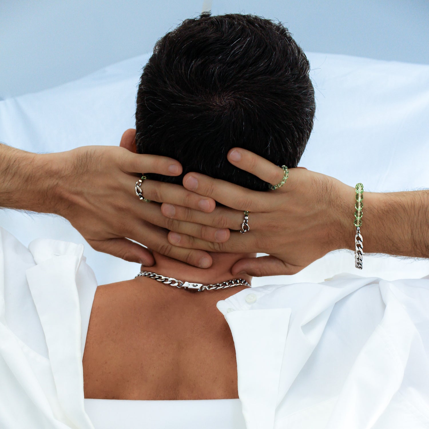 The Azure Collection is our tribute to the beauty of contrast – the calm of the sea during summer holiday meeting the solidity of stone, the softness of summer skies fused with the urban pulse of the city Berlin, during summer heat. Each handmade piece reflects this harmony of opposites: vibrant, joyful Czech glass beads stand for lightness and movement, while strong, clean stainless steel brings structure and edge. Inspired by teh contrast of both world - summer beach days and urban city life, Azure is more than jewelry – it's a feeling, a balance, a statement. Every item is handmade in Berlin and available only in limited quantities.