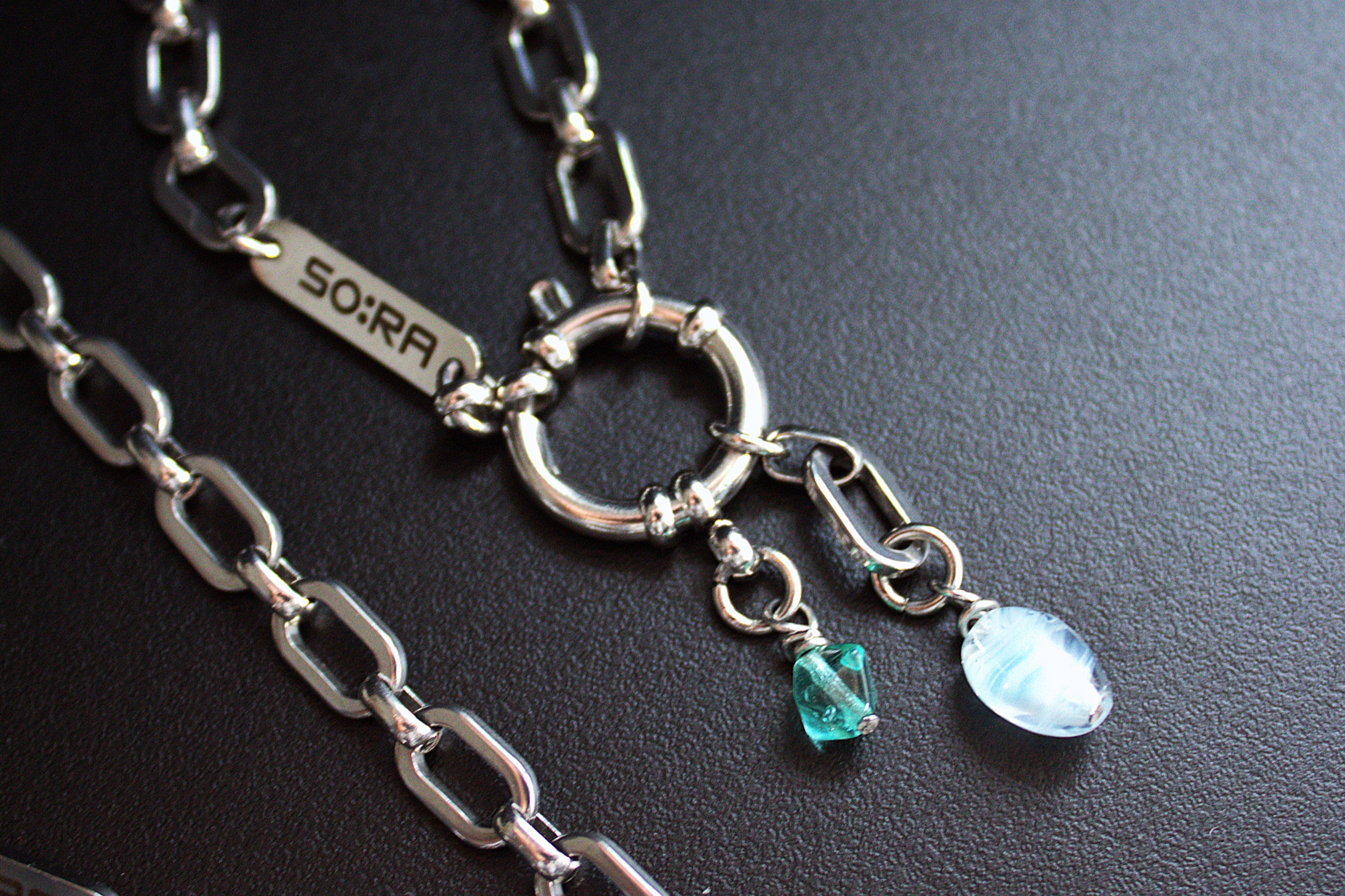 Lovingly handmade in Berlin and strictly limited, the Bracelet : 28PB is part of our Paradise Blues Collection. For a complete look, pair it with the matching Necklace : 18PB and Earrings : 98PB – a modern set that celebrates the fusion of glass and steel in true SOIRA style.