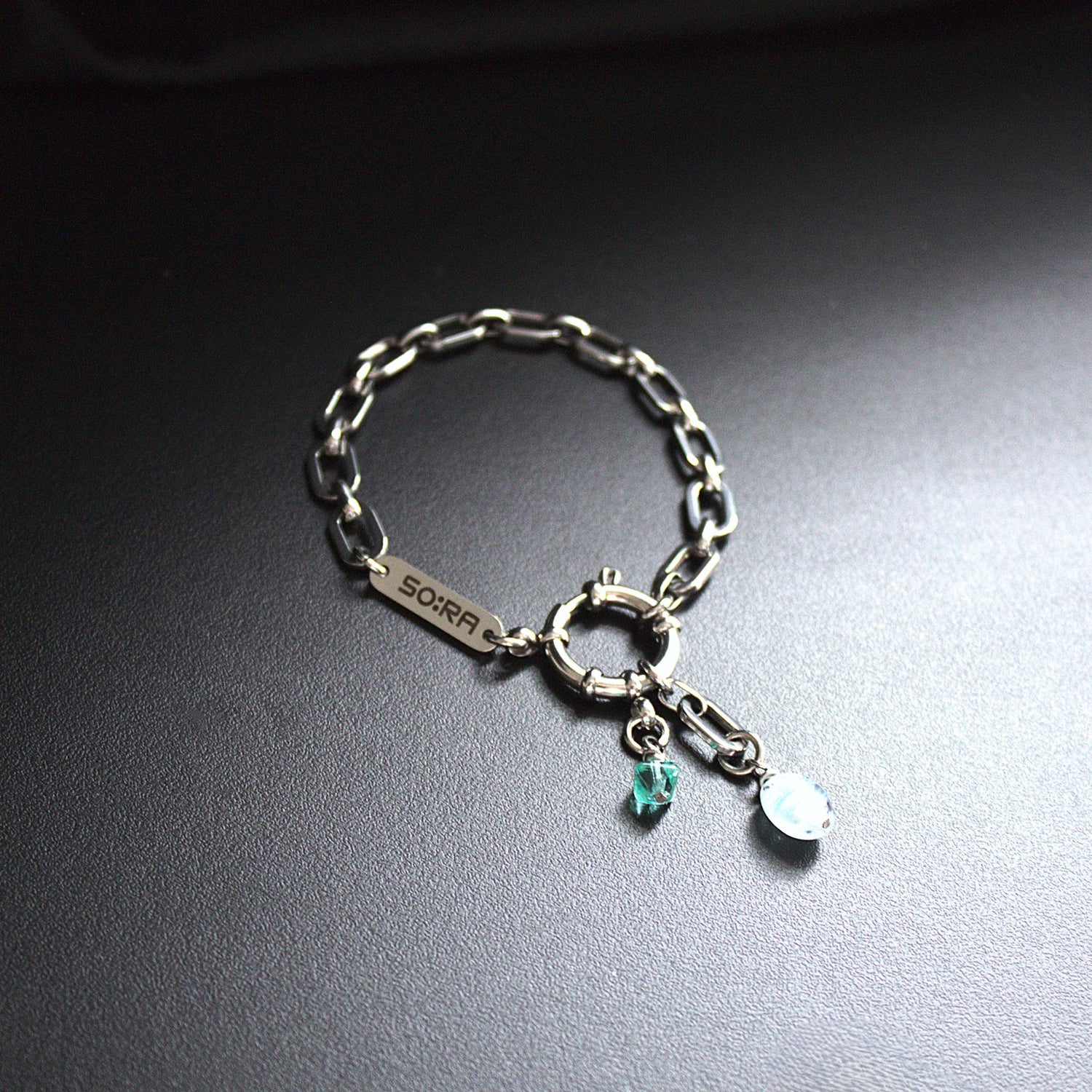 The Bracelet : 28PB by SOIRA blends clean design with handcrafted detail. Its adjustable stainless steel chain with signature logo tag and round sailor closure offers both comfort and flexibility. Two shimmering Czech glass bead charms add a subtle yet striking accent, making this bracelet a versatile piece for everyday wear or special occasions.