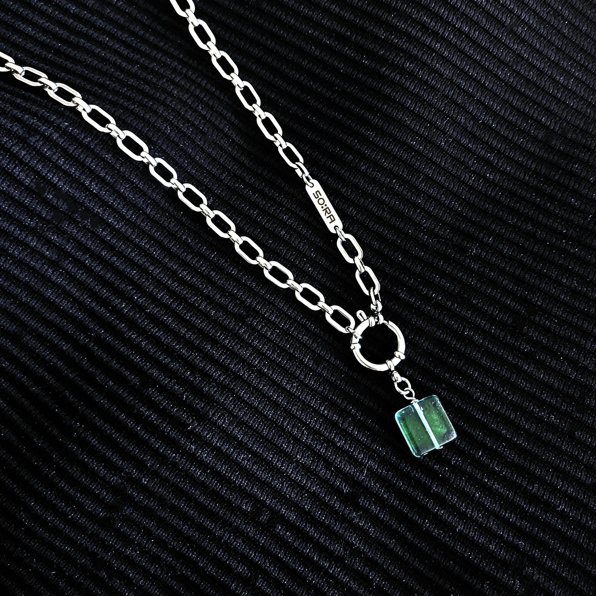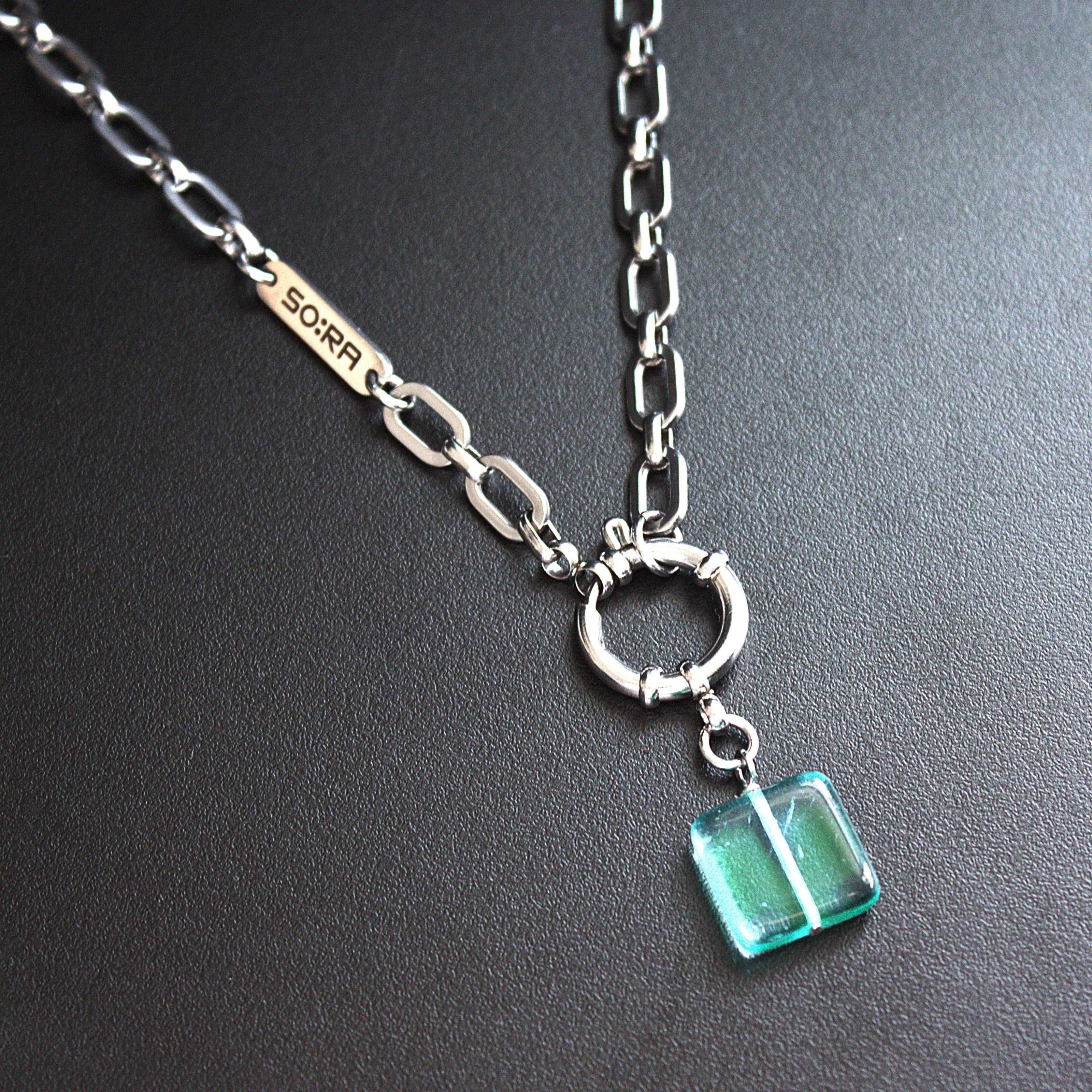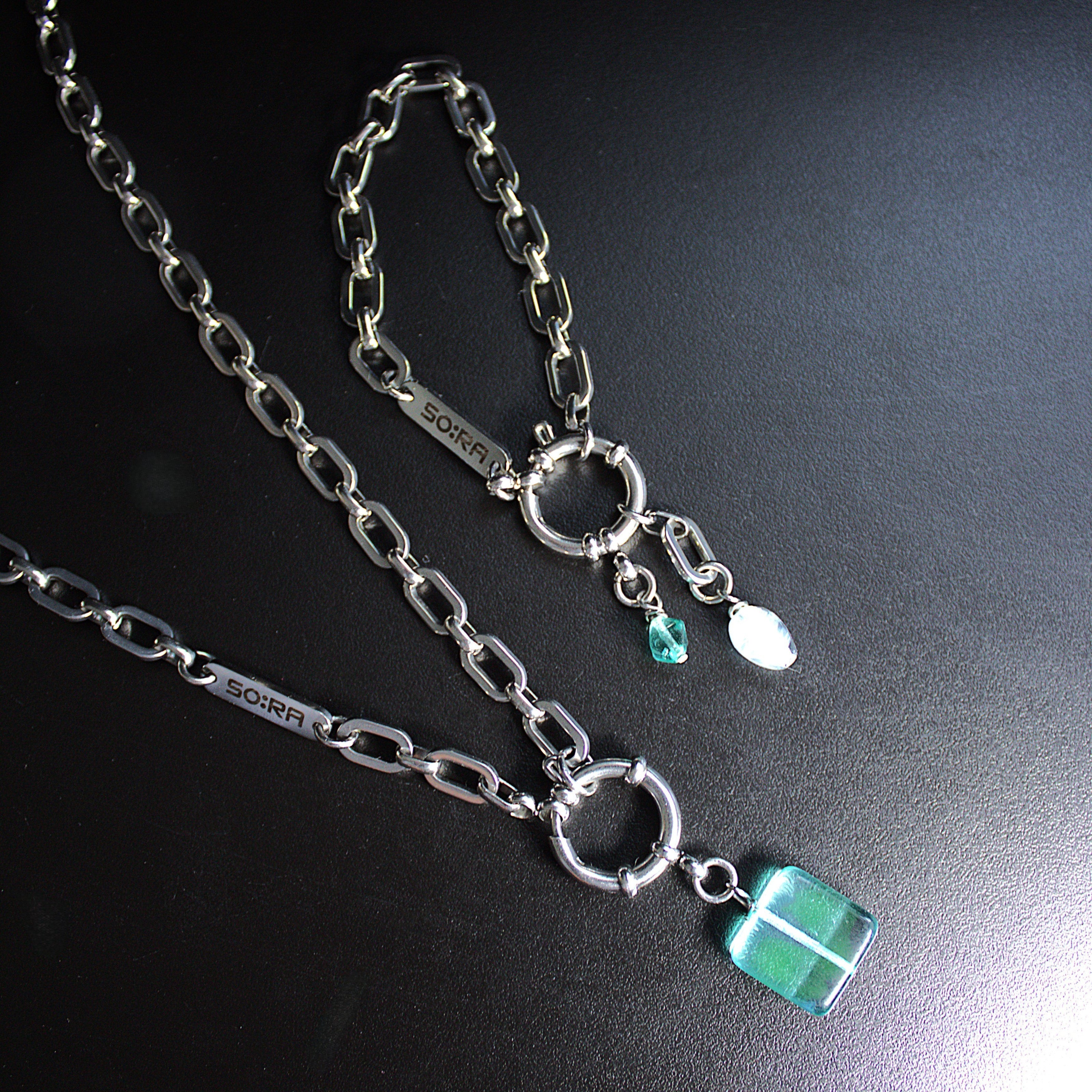Handmade in Berlin and released only in limited quantities, the Necklace : 18PB carries SOIRA’s signature fusion of glass and steel. Complete your look by pairing it with the matching Bracelet : 28PB and Earrings : 98PB – the perfect set for those who value unique jewelry with personality.